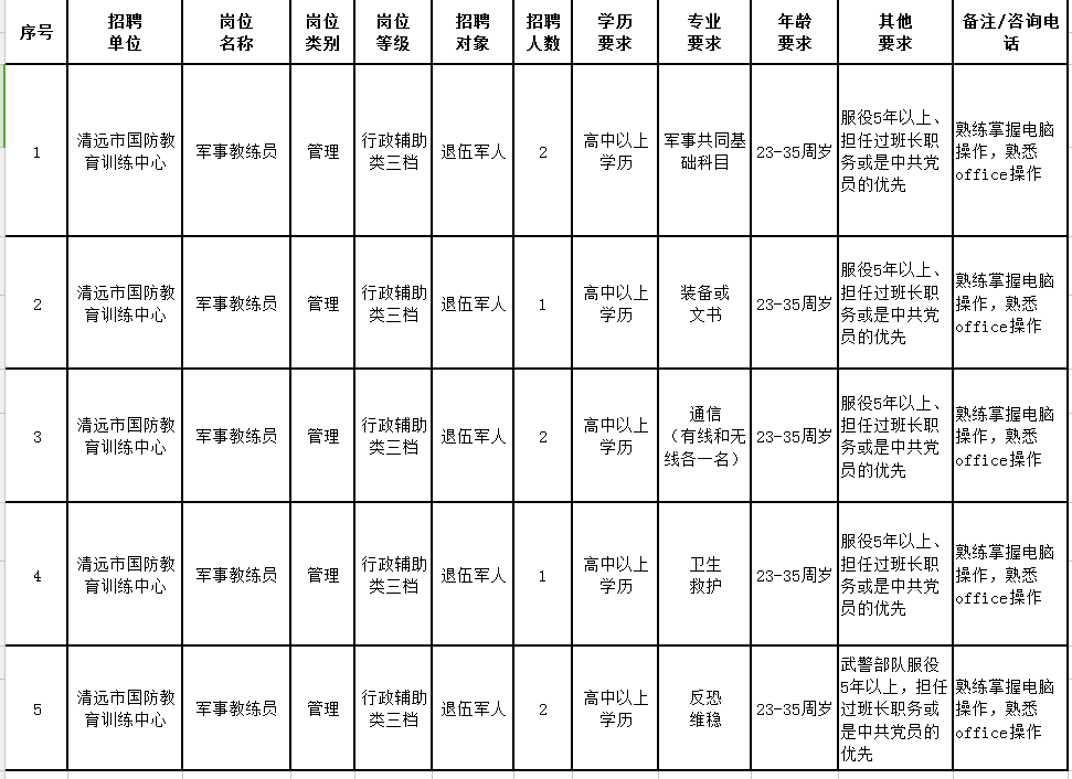 (四)本次招聘工作由清遠(yuǎn)國防訓(xùn)練中心全權(quán)解釋。